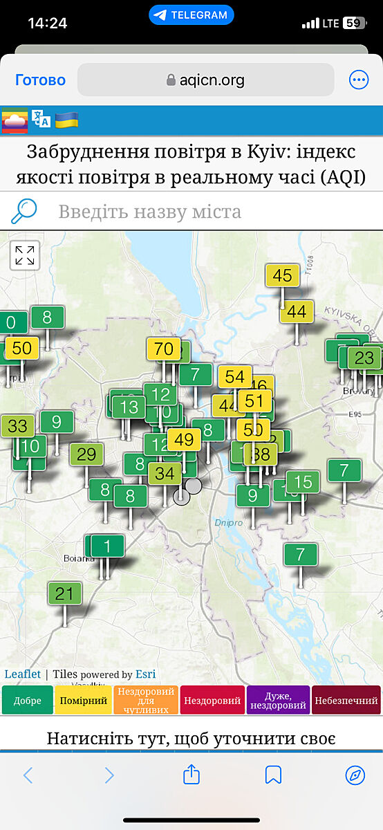 Ресурс в режимі реального часу реєструє показники якості повітря. Подивіться якщо вам цікаво.