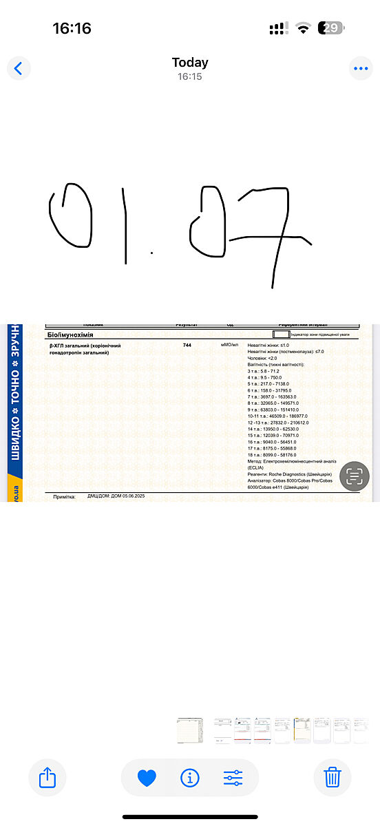 Звісно! Я консультуюся. Але я просто дуже памʼятаю свою динаміку з анембріонією. Зараз показники кращі, але все рівно ХГЧ міг бути більшим. Хоч прогестерон радує - 35