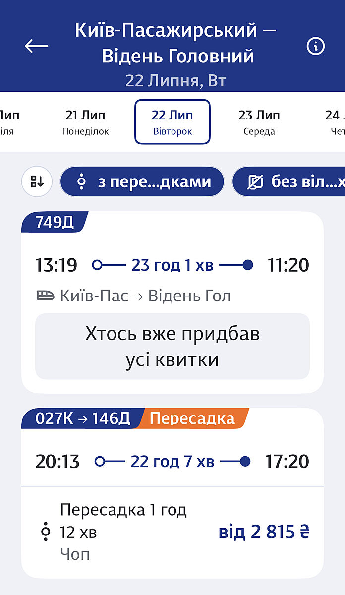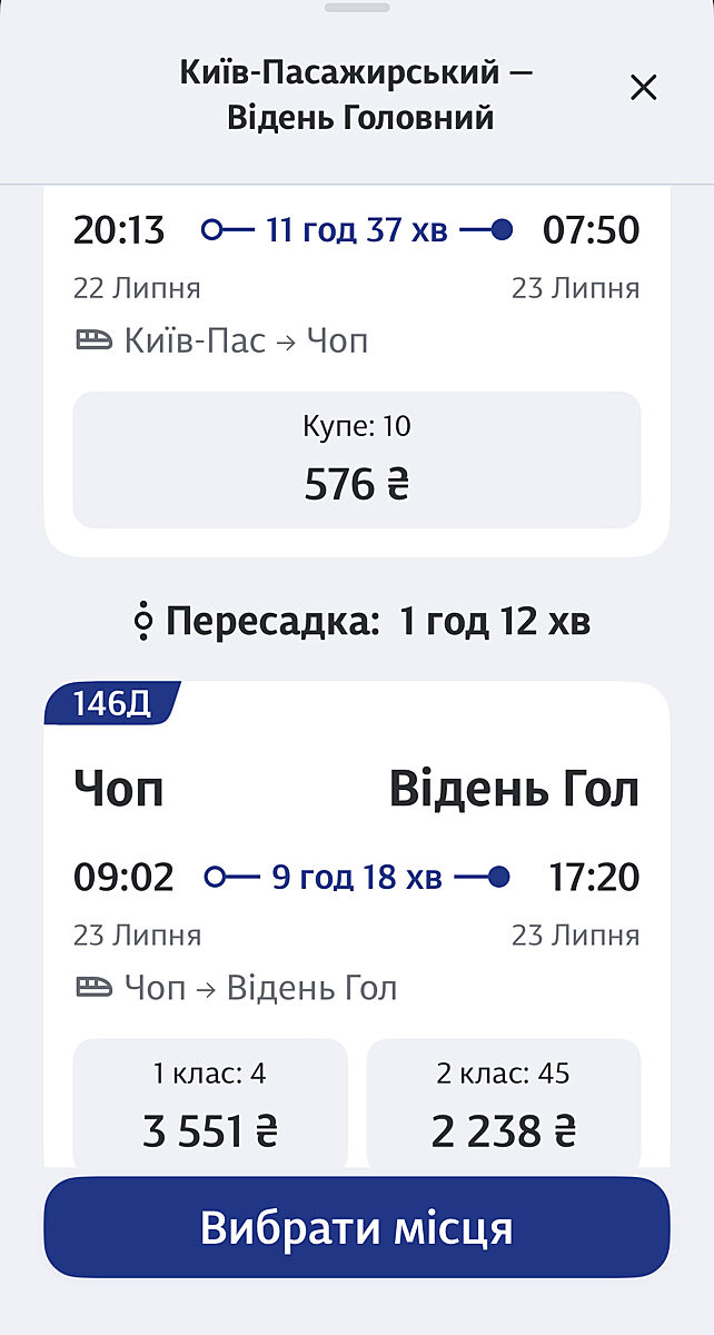На Вену можно купить в приложении через Чоп за 20 дней, Киев-Чоп, Чоп- Вена