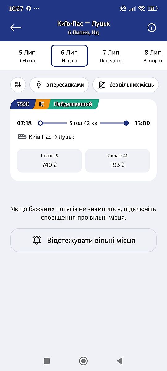 Далі дивіться на Луцьк, серед тижня немає. Які товпи почали їхати у Луцьк? Якщо мені треба їхати серед тижня, то мене не цікавить цей квиток на недільний інтерсіті