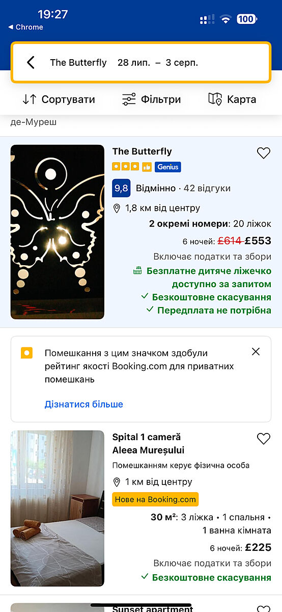 Розглядаємо готелі і квартири. Зірочка в тому що їде мама чоловіка. Мені б хотілося якось окремо. Тобто два номери/дві малюсінькі кв.