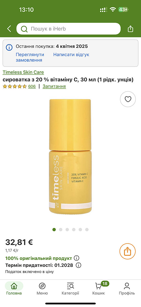 Ось ця в мене. Вона шикарна. В мене була незначна пігментація на олбличчі, так вона прибрала її. Ну і шкіра аж сяє після неї.