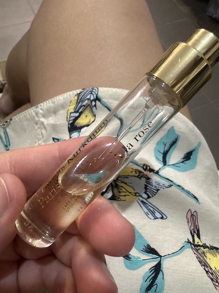 В мене сьогодні MFK A La Rose, дуже ніжний, але зовсім не стійкий😕 Вчора був Byredo Bal D’Afrique ❤️