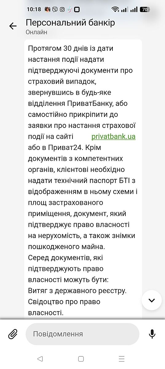 Ну вот так оно и написано, у найкоротший термін. Ну пришла в квартиру, там жопа. 2 часа назад или 22 часа назад - откуда я знаю. Вызвала тетку из ЖЭКа, она пришла акт составила. Понесла акт в Приват своему менеджеру. Ну и доки на квартиру туда же