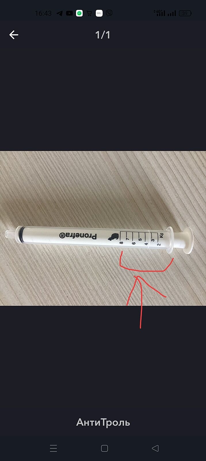 Сегодня ветеринар прописал 1 мл 2 раза в день. Не могу понять как отмерить этот 1 мл. На шприце не указано, сколько в нем миллилитров.