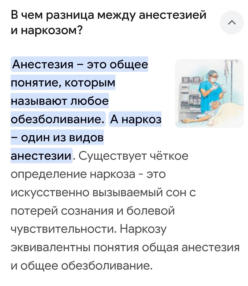Специально для тех, кто не знает разницу между анестезией и наркозом