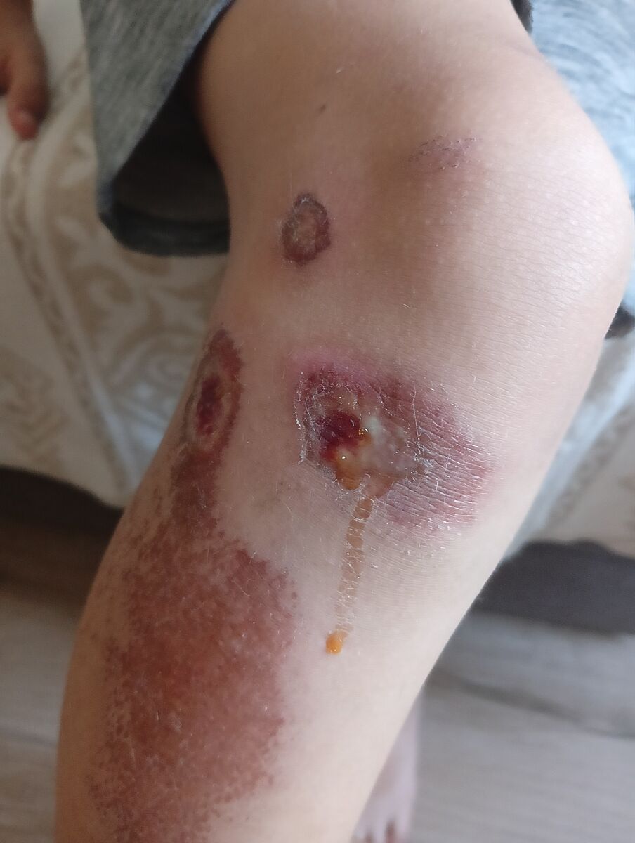 Сын вчера упал с велосипеда, обработали перекисью и хлоргексидином. А сегодня вот такое, гной наверное. Что делать? Или надо в больницу с таким?