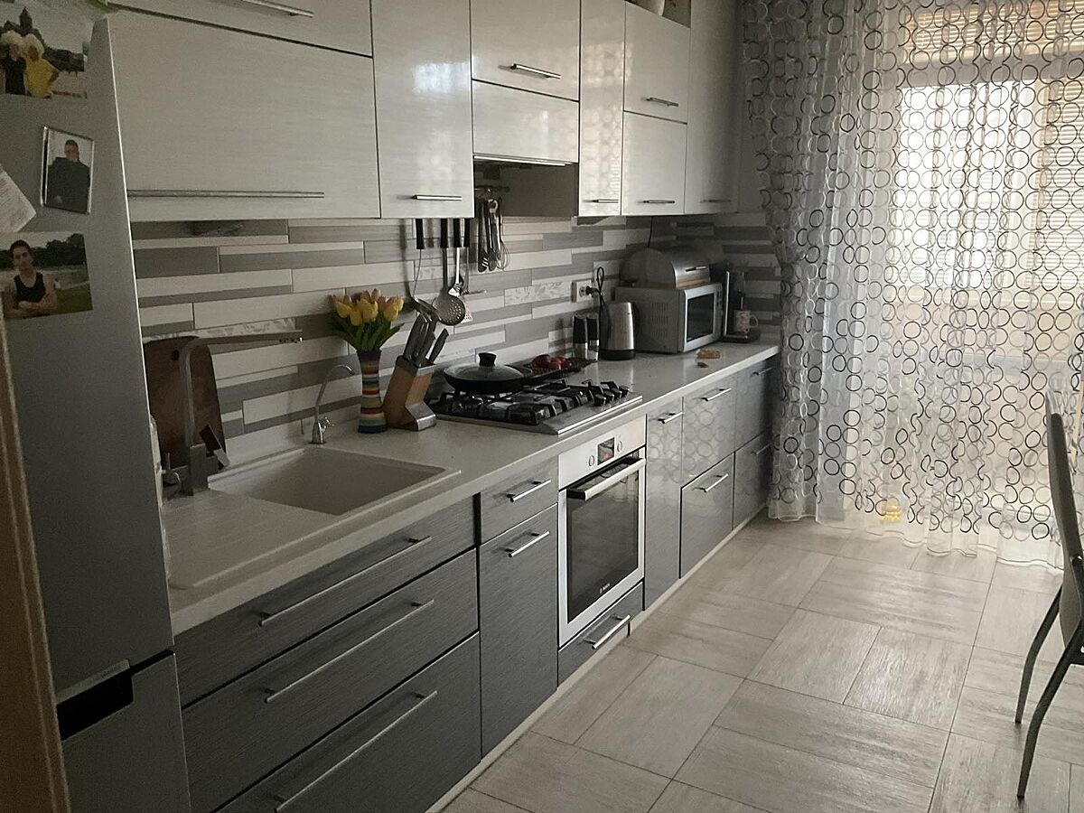 Тут фото 2 гарна сучасна кухня. Третя ваша, правильно? Стільниця сіра буде пасувати до вашого фартуху. Все ви правильно спланували