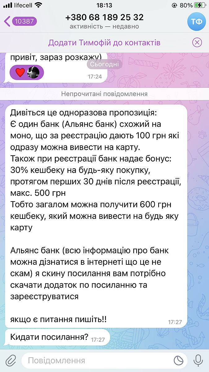 Ну так ссылка же меченная - реферальная, без нее не будет 100 грн, а как обычному человеку знать наверняка, что это действительно настоящая реферальная ссылка на регистрацию в банк а не фишинг и слив данных? Никак