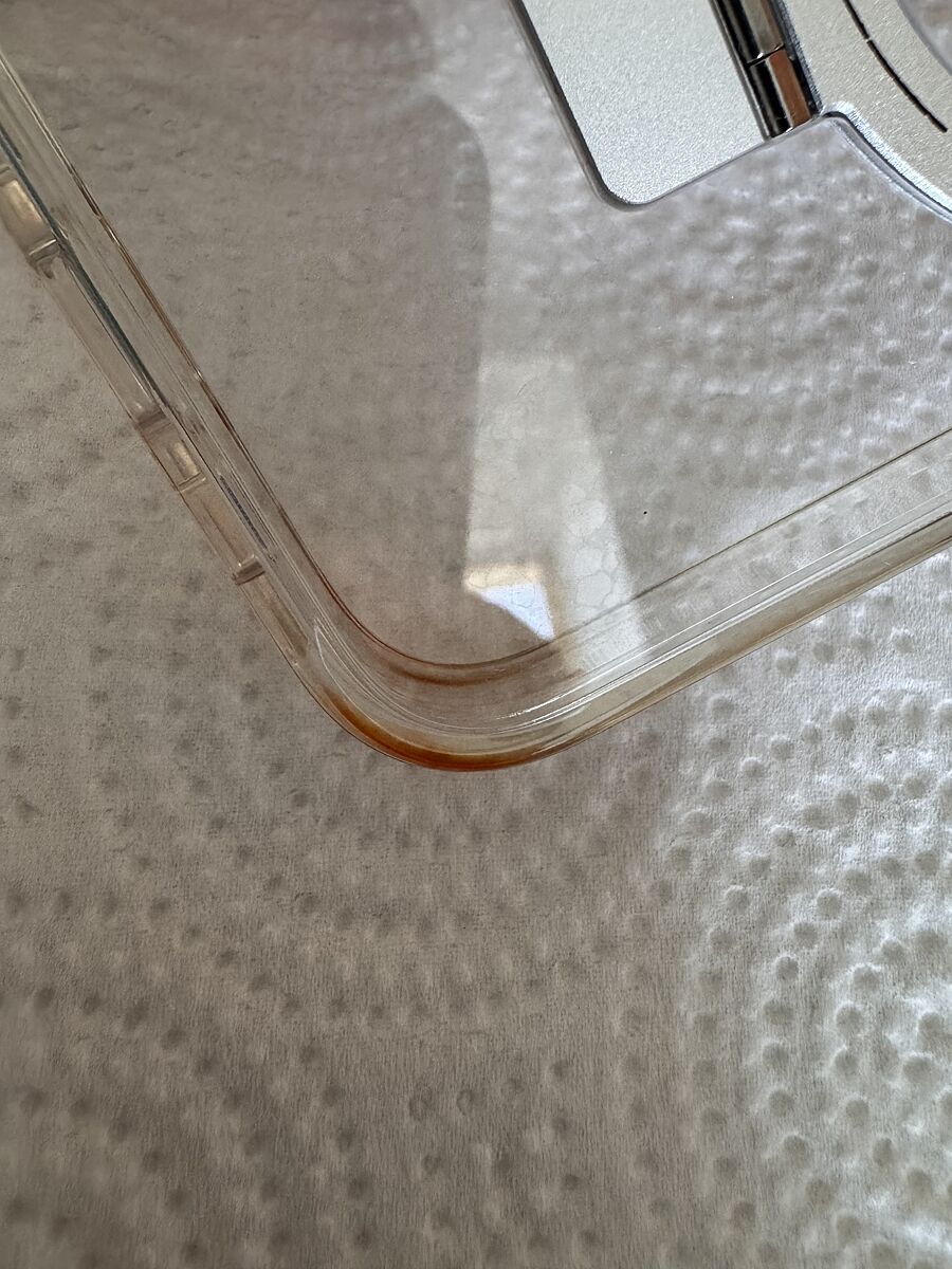 Прозрачный чехол с одной стороны стал оранжевым, это как-то можно убрать?
