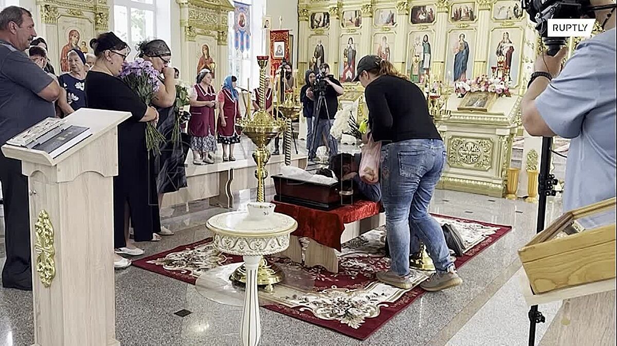 На Курском пляже ,сбивая наши дроны,доблестное курское пво убило детей и взрослых опять.Похорон ребенка в день его рождения.Единственный ребенок в семье