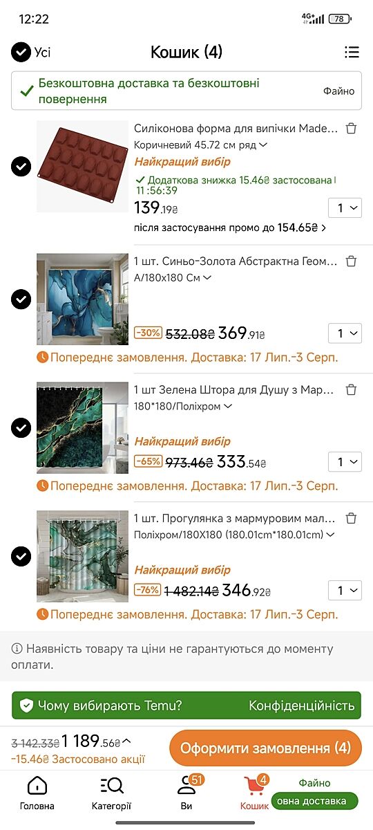 Решила провести эксперимент закинула в корзину товары несколько шт. Сделала скриншоты сколько стоит и решила подождать несколько дней на сколько опустится цена, так вот цена не опустилась, а поднялась. Фото скриншота предоставляю, а то тут любят написать что если добавить в корзину товар и подождать то цена опустится ниже. Ничего подобного они ее завышают искусственно 1скрин фото как добавила, второй сделала пару дней назад.