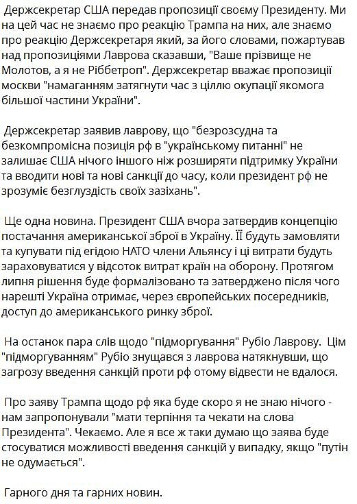 Интересно, какие новые цели войны передала рашка США? В связи с этим Келог к нам едет на неделю? Интрига...