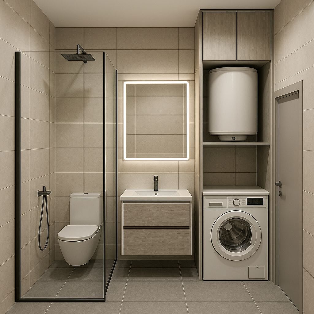 Я таке бачила нещодавно на пінтересті, дуже вузькі приміщення і отак суміщають. Я ще хотіла заскрінити, а потім передумала пам´ять телефона забивати.