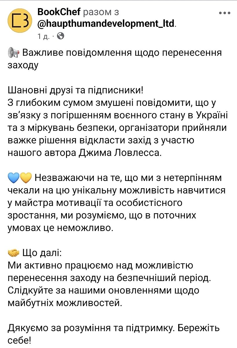 Автор книги "Іди туди, де страшно" відмовився іти туди, де страшно :)