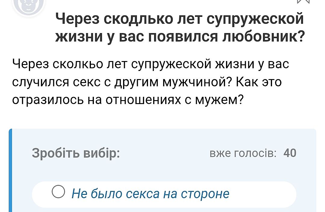 Да-да, ’через сколько лет появился любовник?’, спрашивает автор у женщин, вовсе не имеющих отношения к вопросу