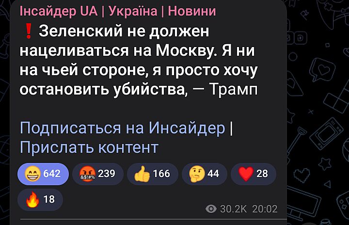Трампу хочеться і колеться. Зря звичайно хтось злив інфу шо мова йшла про удари по Москві.