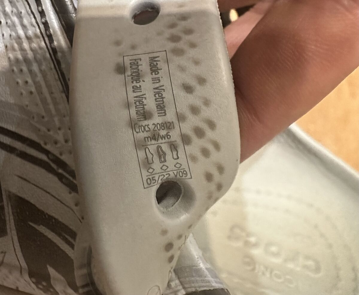 Дівчата, треба Ваша допомога. Сьогодні прийшли мої крокси, але є сумніви щодо оригінальності. Якісь важкувато і по підошві таке,як клей. Також наклейка трохи смутила, десь читала що в нових моделях вибита інформація, а не наклейка.