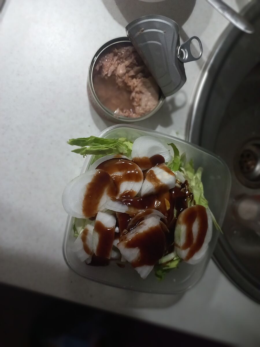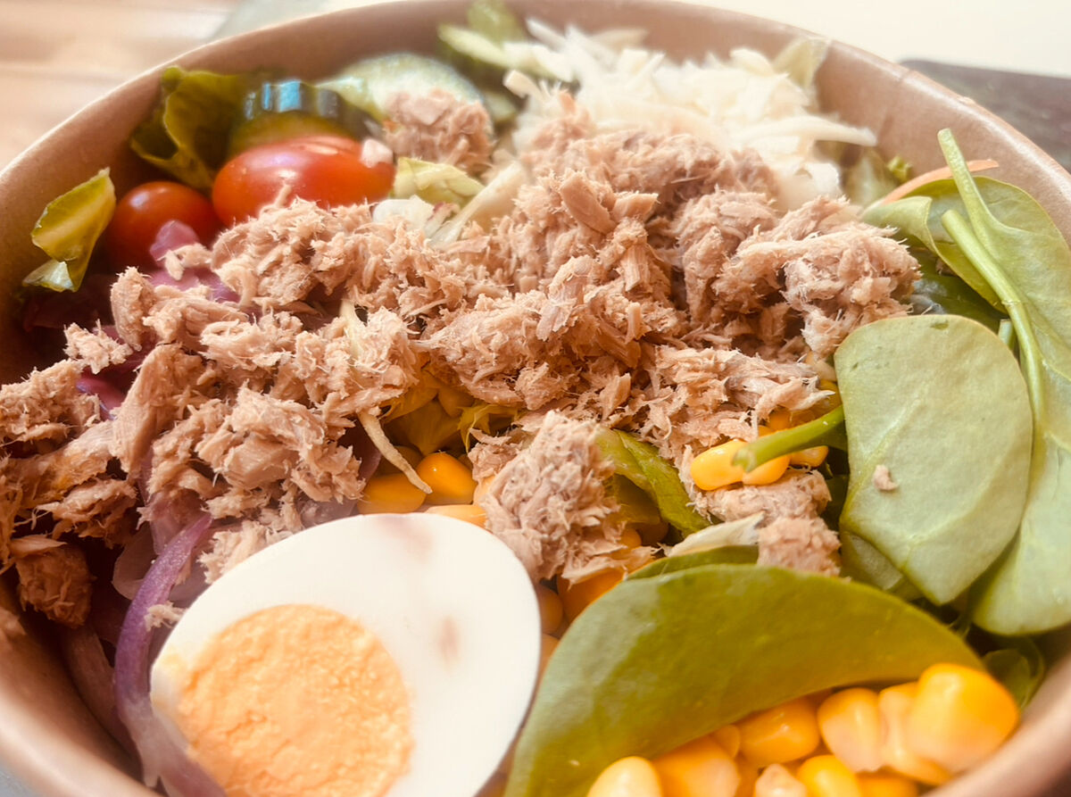 У меня боул с тунцом покупной. Готовить нет желания сегодня.
