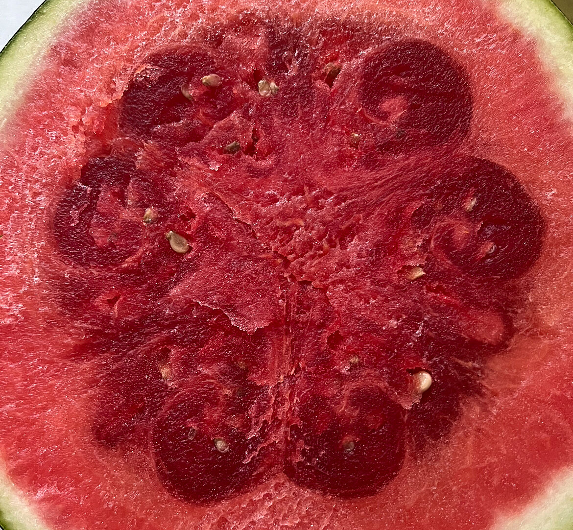 Я такого ни разу и не видела. Уж слишком большой контраст по цвету мякоти.