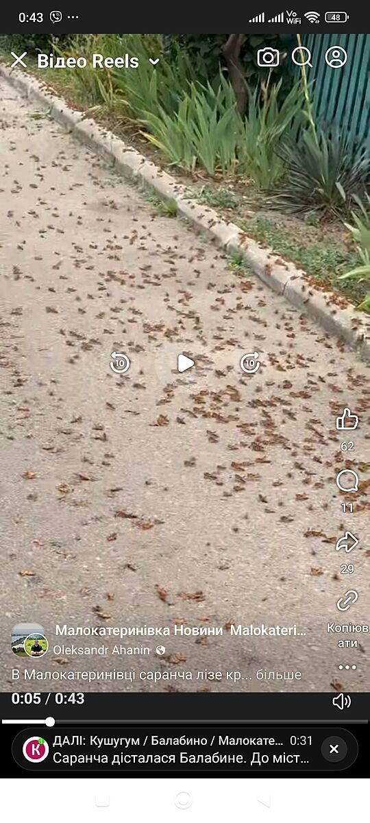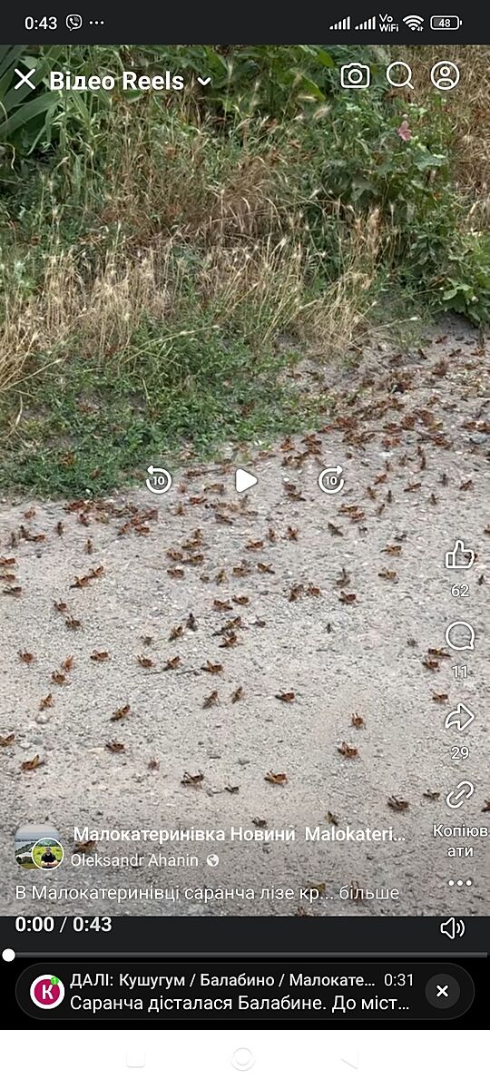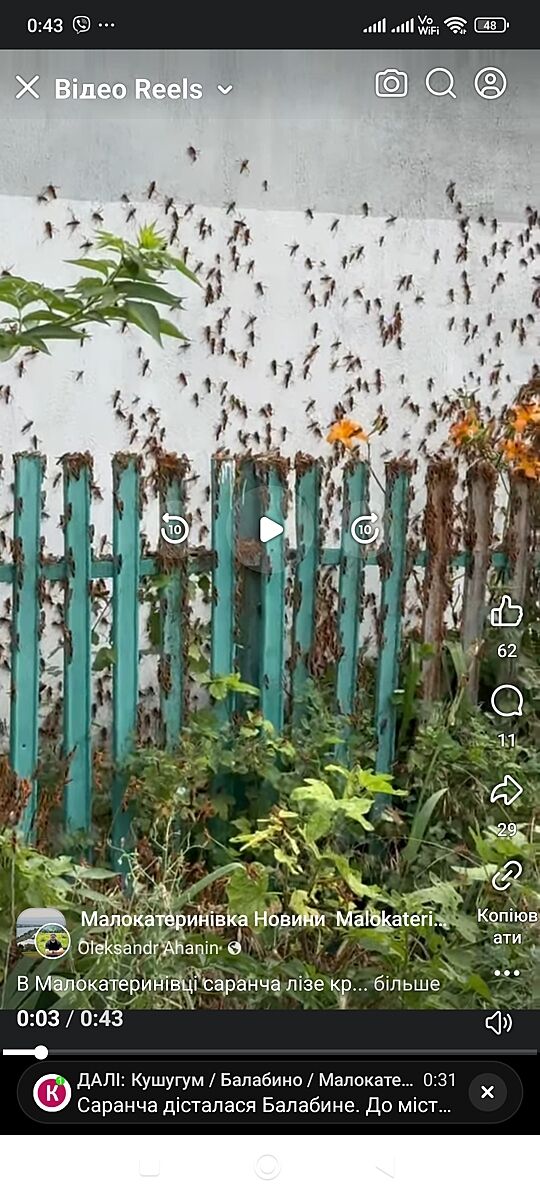 Автор, мене б зараз БАЛА турбують більше. Вибухи в місті, Ви що не чуєте. Сарана ця активна була вдень, цілим роєм літала на Пісках, але зараз тривога і збивають ці рашиські диринчалки. Я думаю, що то не через підрив водосховища, а рашисти так постаралися її спеціально запустити. Самі такі ж самі гидотні, як ця саранча