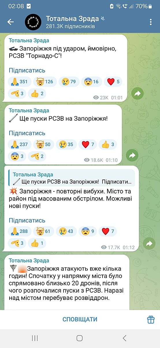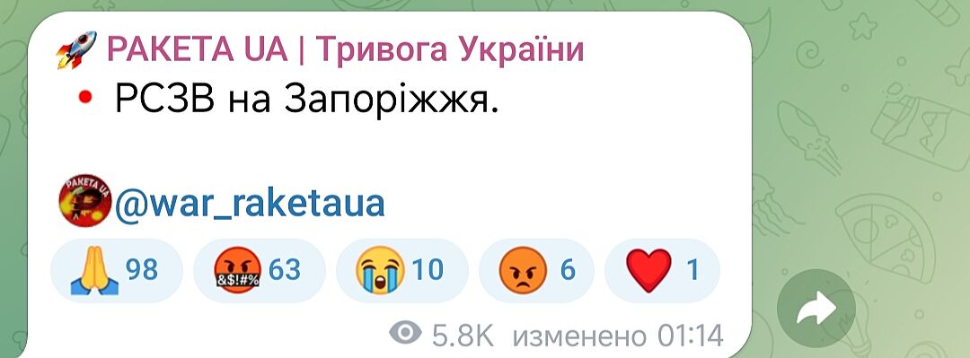 Зашла в новости, ракеты и бпла там летали, рсзв не может до Запорожья доставать