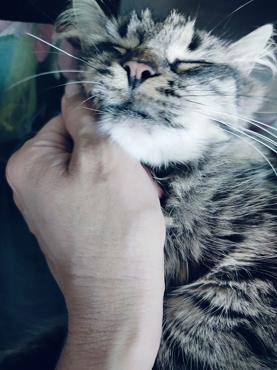 Після смерті кішки мами я сильно горювала, і з часом наш прайд поповнився котами з вулиці і притулку. Ітого додалося 5 котів - 3 тупих різних ступенів, від яка смішна дурненька кицька до капець, яка вона тупа. І лише 2 виявилися розумними - 1 кицька з притулку, розумна, з характером собаки, але не дружня, не любе, коли її чіпають, і з зооагресією. Тобто вона не їсть з іншими, не спить і взагалі, будь її воля, вона б всіх тварин повиганяла. І останній кіт приблудився до бабусі, як війна почалася, сусіди виїхали, а його залишили. Його і до війни не балували, а тоді взагалі був схожий на скелет, я думала, не виживе. Трошки відгодували, він почав залишатися, з двору вже не йшов. Взялася його вичухувати, вперше в житті потрапив до лікаря, лікування, вперше купався, до речі, в туалет з першого разу без промахів, хоча це дорослий сільський кіт. Розумний, ласкавий, на мене як на бога дивився. Як би я знала, що він такий золотий кіт, чесно, то не брала б отих кицьок. А тепер несемо цей хрест)