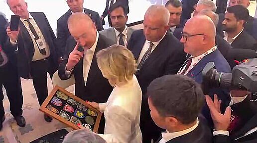 Украинская журналистка Елена Курбанова передала президенту #Азербайджана Ильхаму Алиеву коллекцию нарукавных шевронов украинских военных, и тот не просто принял подарок, но и поблагодарил с теплыми словами в адрес #ВСУ: «Спасибо за то, что вы делаете. Продолжайте в том же духе».