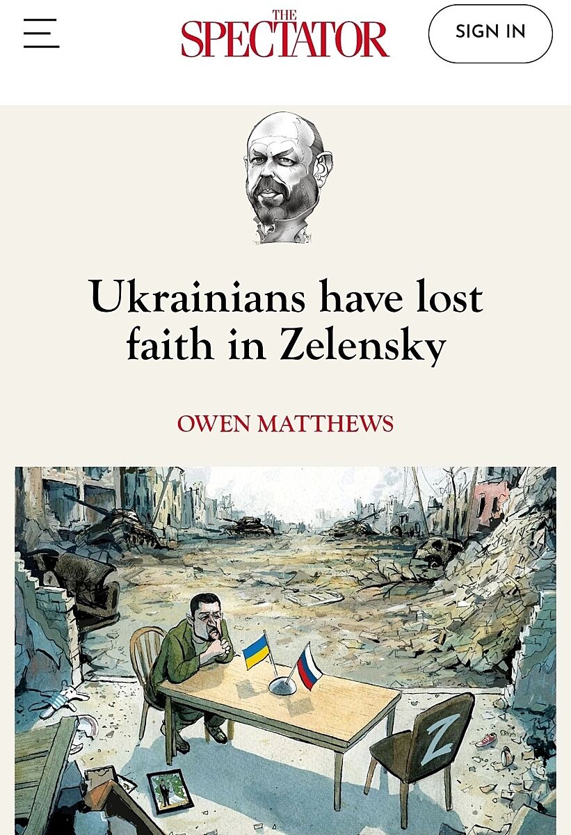 Ця стаття не могла не з´явитися в британських ЗМІ. А ’The Spectator’ - це як раз британський щотижневий консервативний журнал. Він більш консервативний ніж ’The Economist’ і системно просуває антиросійськи тези та підтримує Україну. І те, що вони пишуть давно вже обговорюють, не публічно, західні політики. Це ще не вирок Зеленькому, але поява такої статті - набат. Стаття про загрози, перед якими стоїть сьогодні Україна через авторитарні та некомпетентність дії Зеленського, який живе сьогодні ідеєю фікс - утримання влади у своїх руках. І результат всього, що сьогодні відбувається - це наслідки царювання Зеленського. Я не зі всіма погоджуюся у статті, але на 90% сказане в ній співпадає з тим, що я бачу та чую. Але головне, що всі ці проблеми, від мобілізації та СЗЧ до боротьби з корупцією та некомпетентності у владі, можна вирішити. На жаль, це взагалі не потрібно Зеленському.