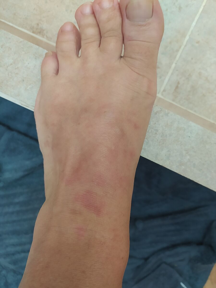Може хтось знається на дерматології? З´явилось на обох ногах після дешевих кроксів. Чи не схоже на псоріаз? Не болить, не зудить.