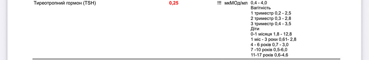 Також ТТГ низький. Записалася на консультацію до ендокринолога, мабуть, треба відміняти L Тироксин.