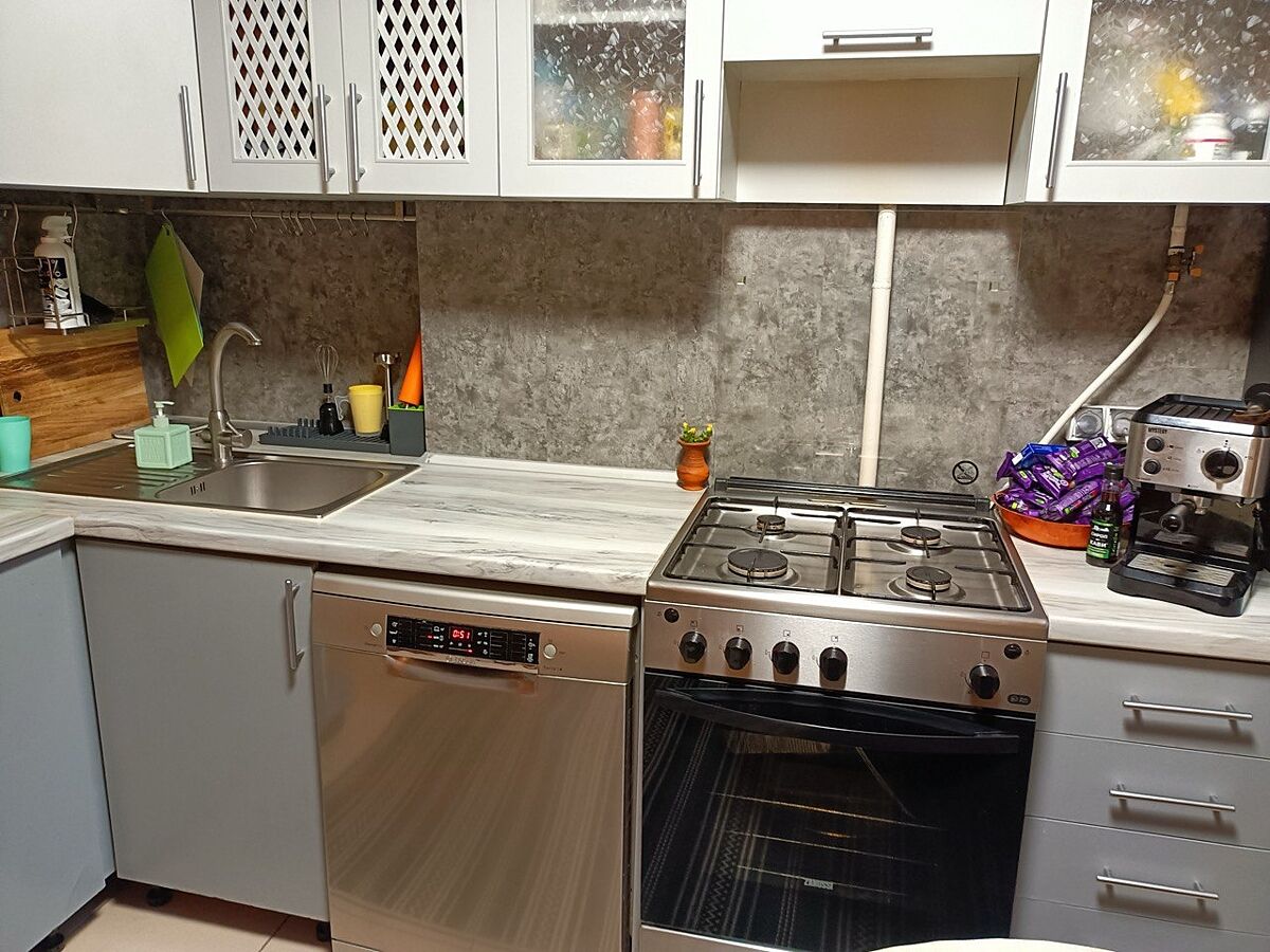 Робила ремонт 4 роки тому, заїхали в квартиру 2 роки тому. Те, що не зробилося тоді, так і стоїть. Дрібниці типу шафа над бойлером і т.д.