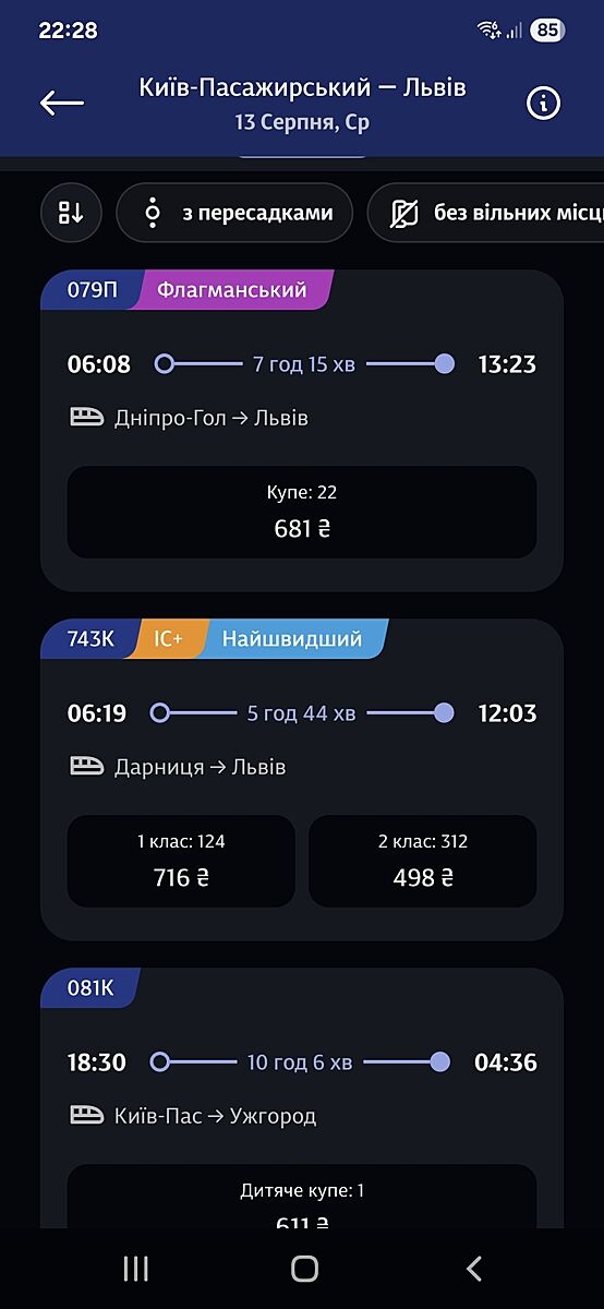 В застосунку Укрзалізниці. Поїзди є, але білетів вже немає.