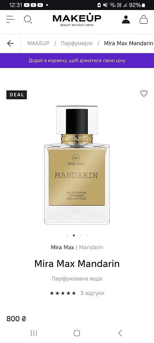 Мандарин не так відчувається, як в інших ароматах. Мені чомусь через деякий час починає троядою пахнути та трохи гірчить. Але подобається.