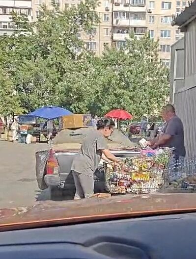 Некоторое время назад на видеорегистратор попало странное. С черного хода (грузового) Сильпо люди вывезли тележку с уцененными продуктами и выгружали их в пикап. Жара ну +35 на солнце как минимум.