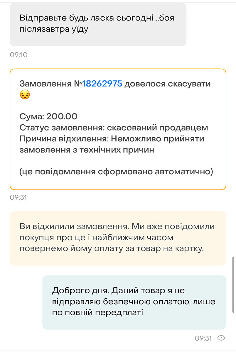 Почему доставкой олх не отправляете? Я как продавец отправляю, меньше проблем потом. И как покупатель покупаю только с этой доставкой. Мне нужно видеть, что прислали и в каком состоянии.