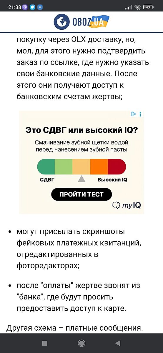 вони в такий спосіб виводять продавця з офіційного сайту і продовжують переписку в мессенджері, а потім кидають посилання на фейковий ОЛХ, типу ’кошти перевели, прийміть’. А по писиланню людина заповнює всі дані своєї картки.., і все.