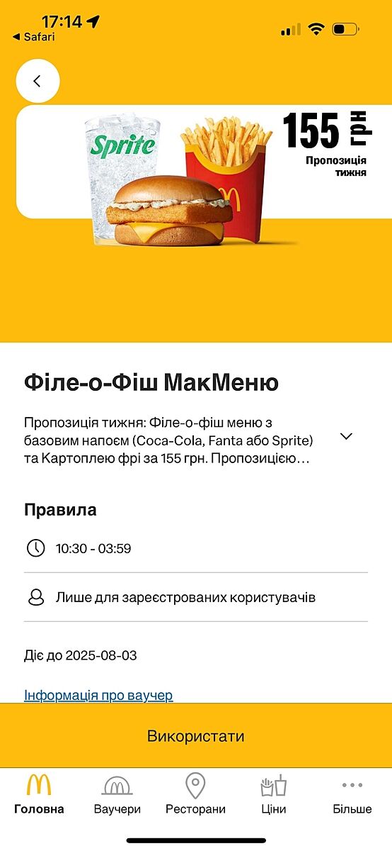 А порції картоплі і напою однакові, що зазвичай, що зі знижкою в додатку?