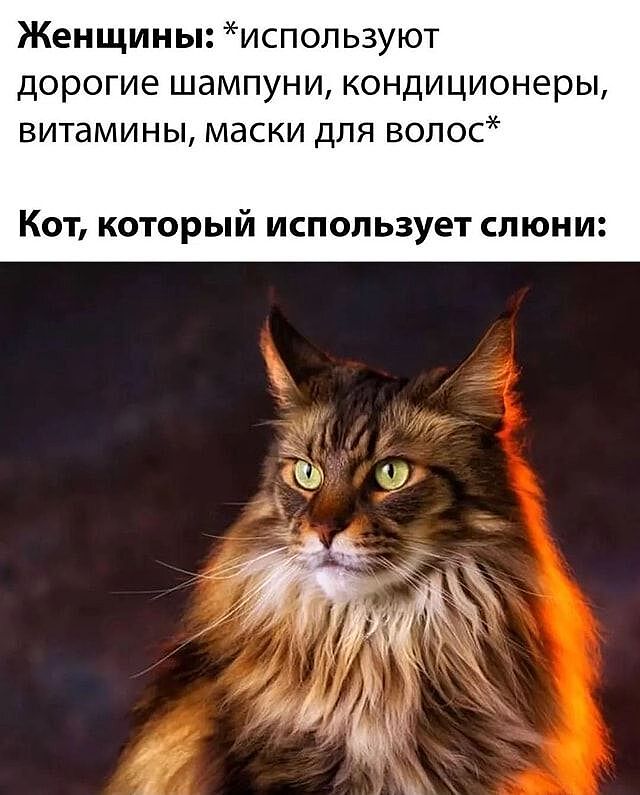 Потрібно споживати котячий корм щоб волосся було шовковисте. Гляньте на вуличних котів і порівняйте з домашніми. Різниця в шерсті величезна, а миються язиком що перші, що другі. Висновок, їжте віскас!