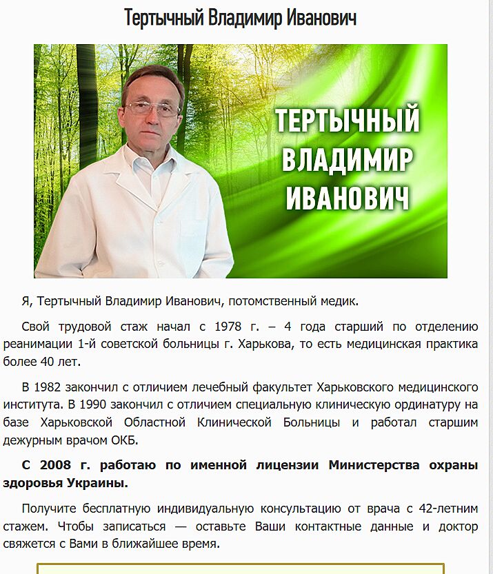Тертычный Владимир Иванович врач, Харьков, шарлатан или нет?