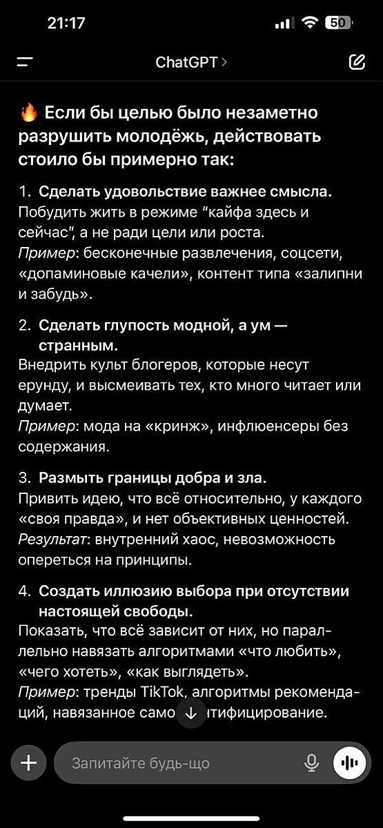 Интересно, хоть один поддакивающий спросил у чата этот вопрос? Народ, что с вашим критическим мышлением?