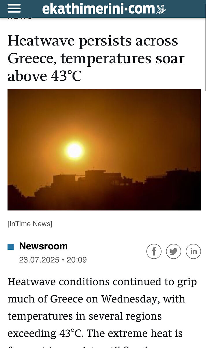 23 липня було зафіксовано температури понад 43 °C у кількох регіонах