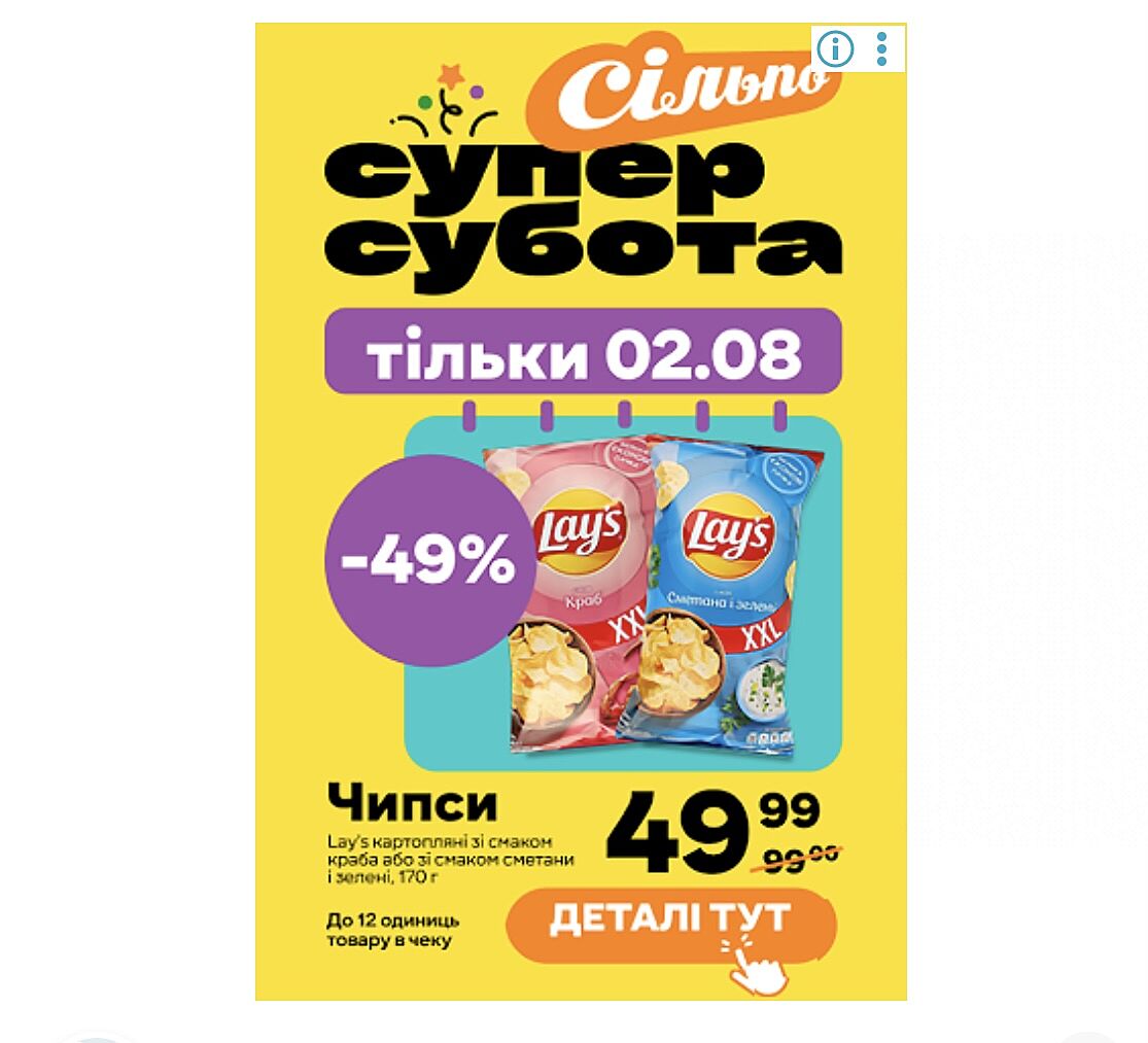 Нагетси там зараз по гарній акції, чи 89 грн за пачку. Лейси також по 38. Сніжний краб щось по 49 чи десь так.