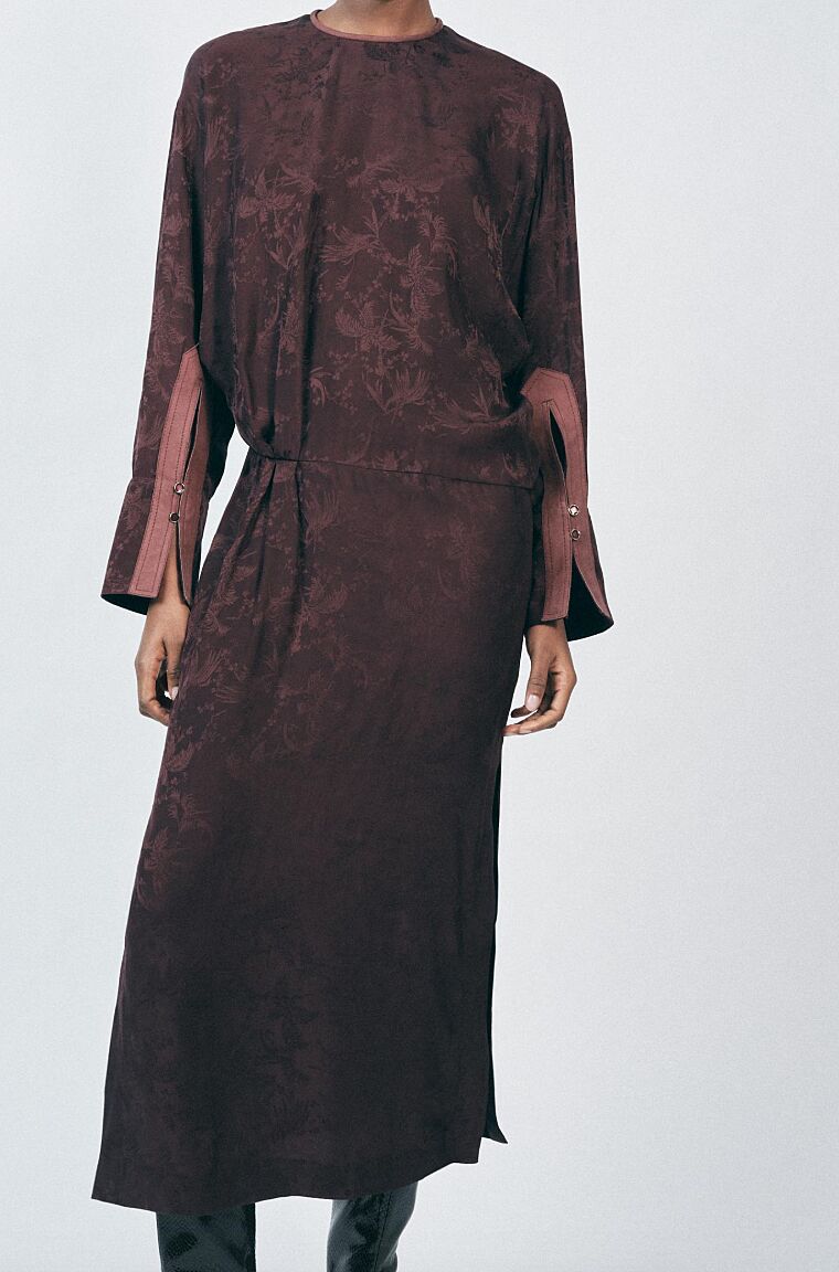 Мне нравятся прыщавые тапки и ткань в коричневом платье.