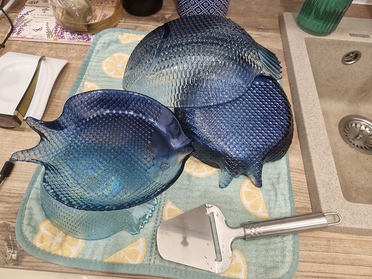 Я когда-то давно слепила рыбу, мне эти тарелки ее напомнили)
