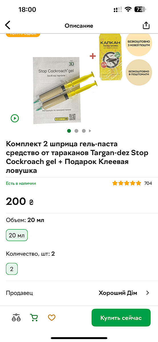А Адвіон пробували? Не дешеве задоволення, але виводить тарганів на ура. Тільки купуйте там, де є багато відгуків, бо підробляють, брала на пром. Я до Адвіона боролася з тарганами пів року різними засобами і ніяк. А з цим гелем вивела за 2-3 тижні повністю