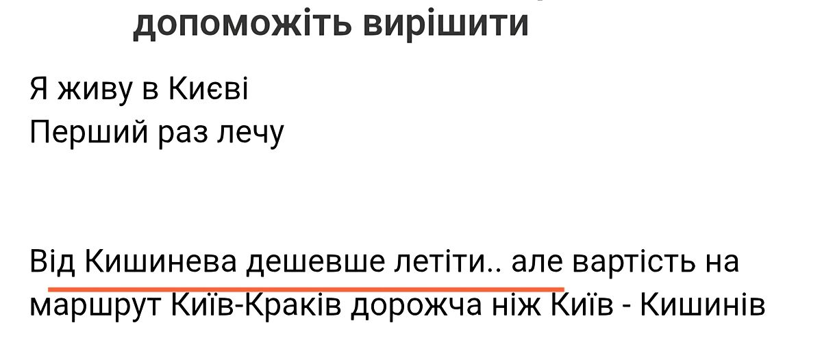 Від Кишинева дешевше летіти.. але вартість на маршрут Київ-Краків дорожча ніж Київ - Кишинів