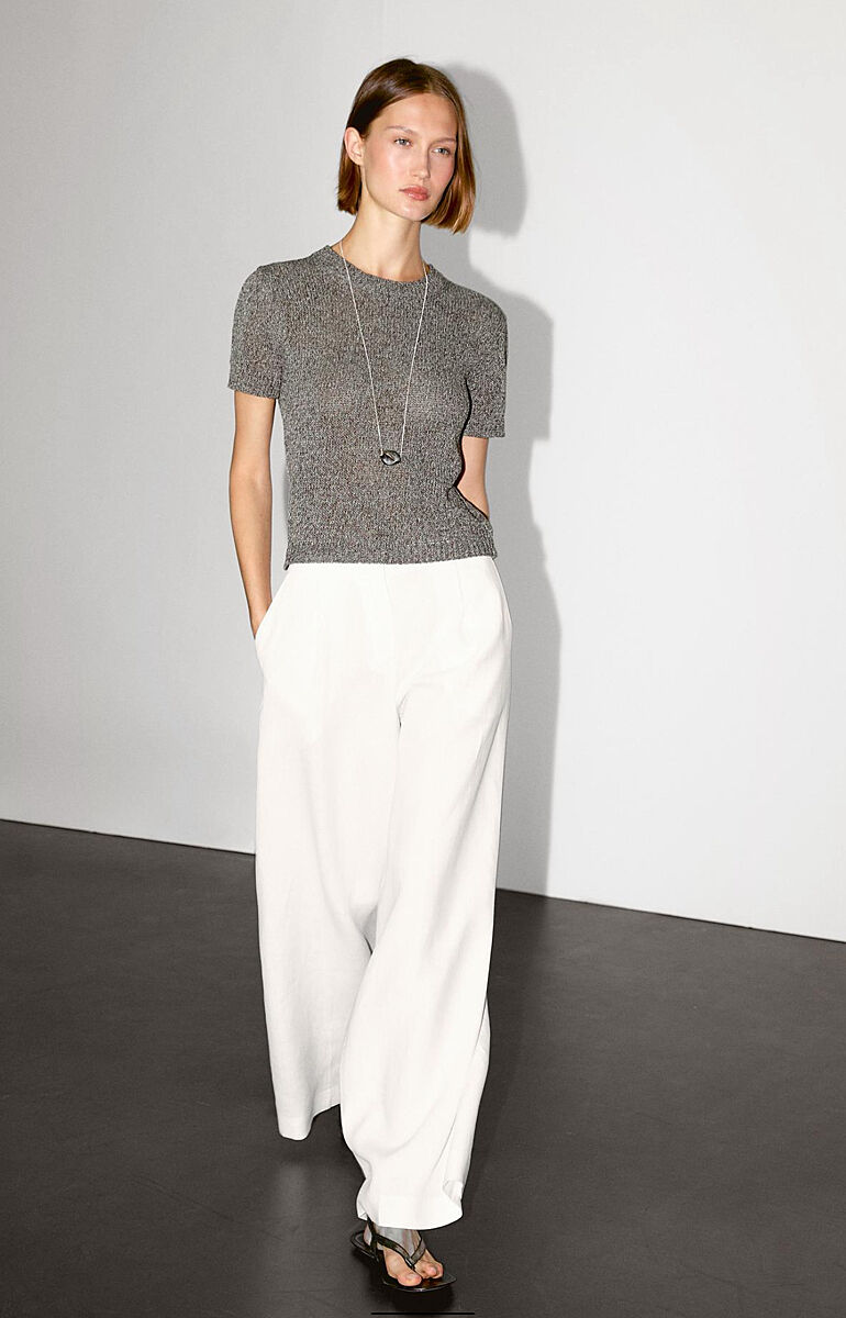 Для меня плюс-минус однотипные, носить буду в одних и тех же ситуациях на каждый день и стилизовать как на фото - брючный низ и кофта без верхней одежды, на сентябрь подойдет. По составу белый хлопок, серый хлопок с металлизированным синтетическим волокном.