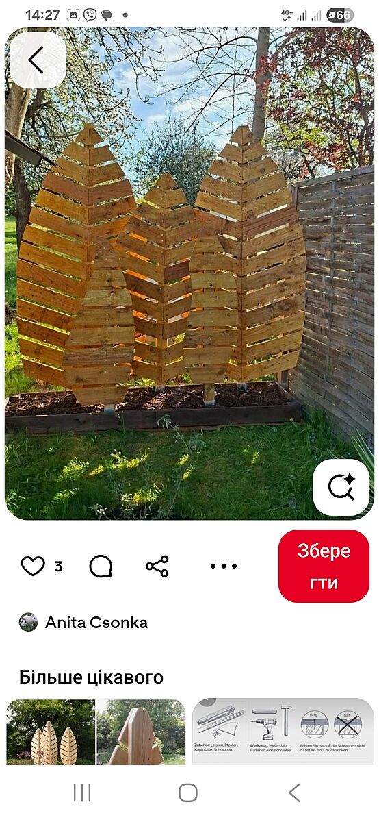 Дякую, цікаво. Щось може і візьму за ідею. Але на ту стіну нічого плестися не хоче, бо світла мало. Що тільки не садила, не росте, і край!