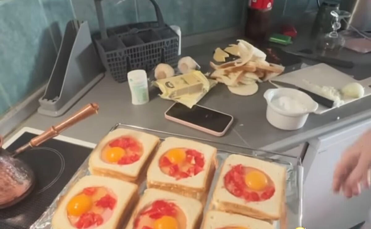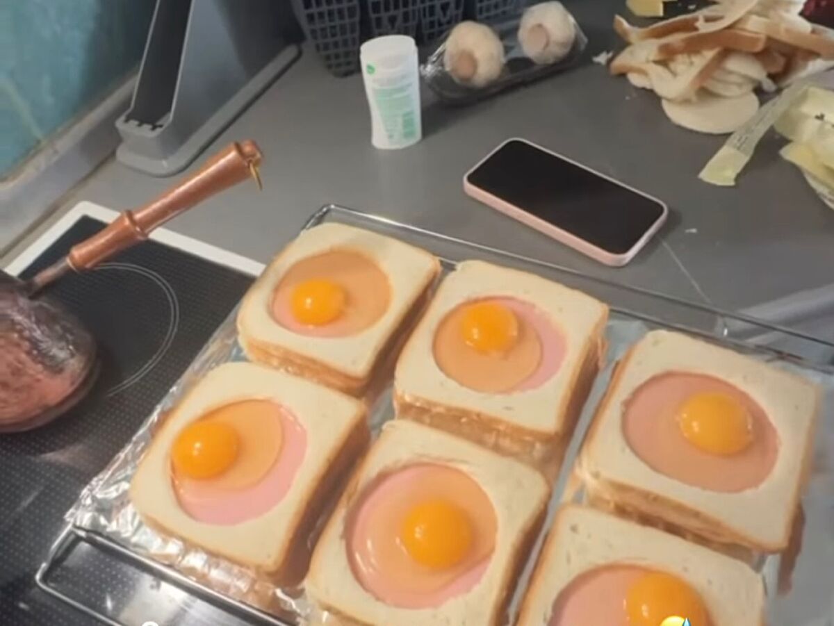 Бо в крок мадам не вирізають дірку в хлібі, не заливають туди яйце і не кладуть помідори з зеленню, а беруть 2 тоста, перекладають шинкою і сиром, обсмажують, кладуть зверху яйце пашот і заливають бешамелем.